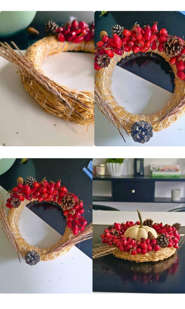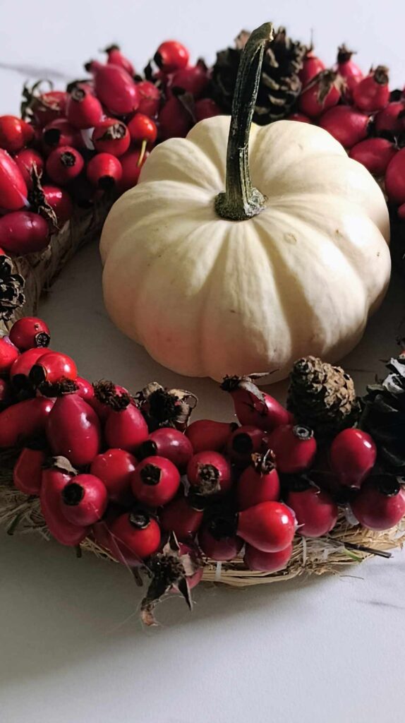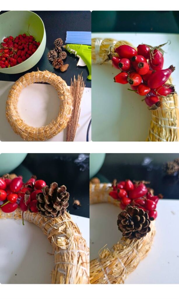 Hagebuttenkranz selber basteln: Einfache Anleitung mit Strohkranz & Zapfen